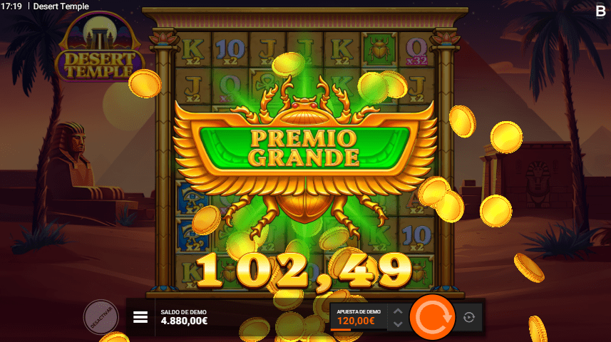 En cuanto a la volatilidad, Desert Temple slot tiene una volatilidad media-alta (4 de 5). Esto implica que las ganancias no son tan frecuentes como en los juegos de baja volatilidad, pero cuando ocurren, pueden ser significativamente más grandes. Es ideal para jugadores que buscan una experiencia emocionante con la posibilidad de obtener grandes recompensas, aunque con algo más de riesgo.